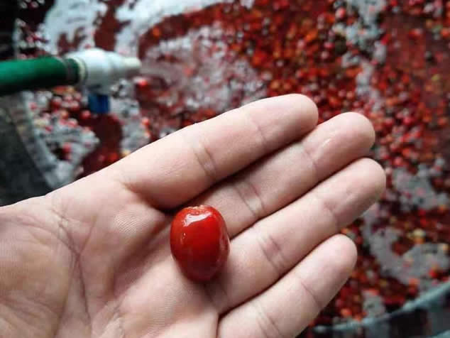 2. 密封的袋放入冷箱中,咖啡在13-15℃的溫度下放置三天,三天后取出咖啡,并將其放置環境水溫20℃中,取出漂浮起來的咖啡櫻桃,篩選完的咖啡進入干燥環節。