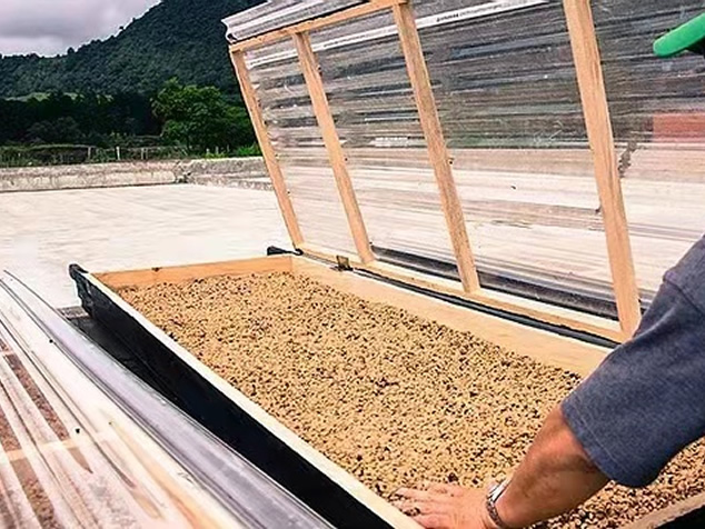 4. 發(fā)酵完清洗豆子,放在曬干架上用自然陽光和微風吹拂曬干